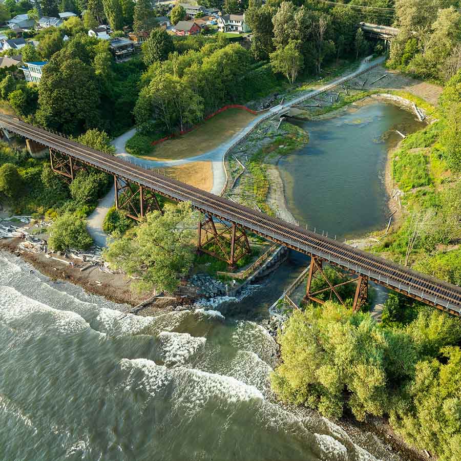 The City of Bellingham restored 4.85 acres of estuary habitat at Little Squalicum Creek in 2024, replacing a culvert with an open channel that allows fish to move upstream. Eli reports that surveys have since documented nine fish families, including Chum, Coho, and threatened Chinook salmon. Read more →
