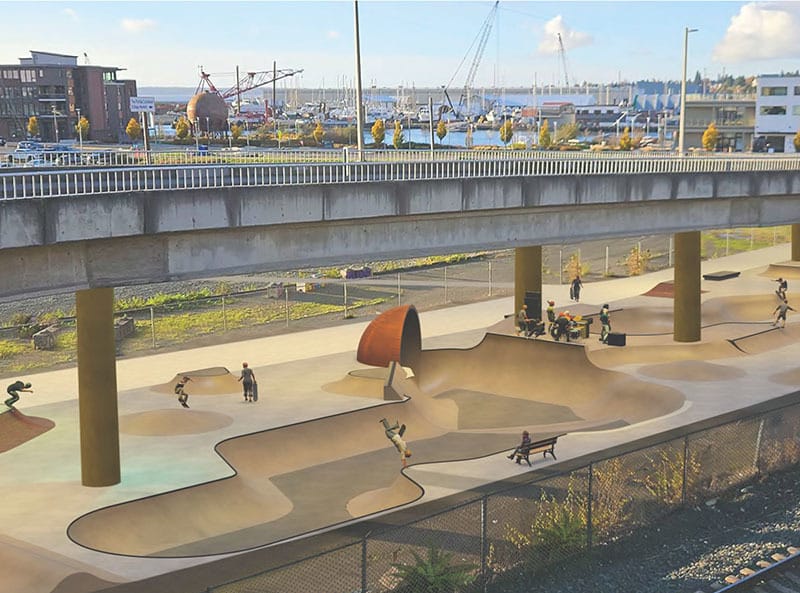 Progress continues on Bellingham’s waterfront skatepark project under the Roeder Avenue Bridge, with the City of Bellingham and the Northwest Skate Collective now seeking community input on its conceptual design before progressing to a technical design phase. In July we looked at how this community-driven project began as a grassroots effort by local skaters transforming an overlooked space.