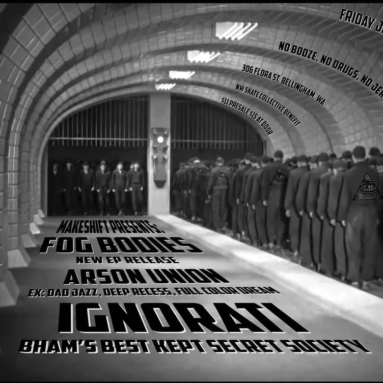 Ignorati, Arson Union, and Fogbodies ignite Make.Shift for the venue’s first show of 2026. Fogbodies return from the crypt with a new vocalist and their signature death rock revival. Arson Union make their debut with a sound that nods unapologetically to Hot Snakes-style post-hardcore energy. Headliners Ignorati deliver their rough-edged, smoke-thick punk straight from Bellingham’s basements. Music runs 8:30 to 11:30 pm.