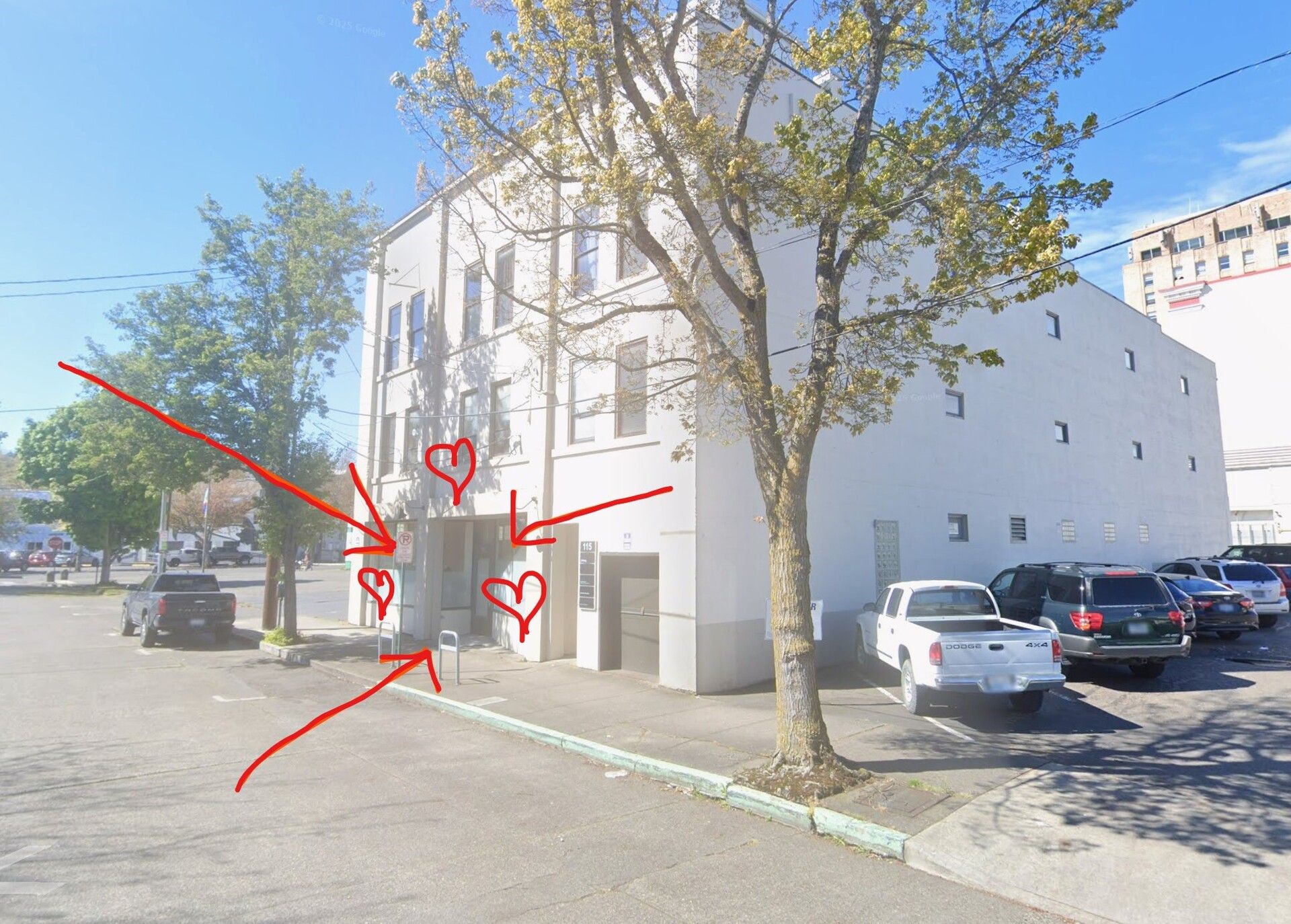 Yes, that’s a crummy Google Earth screenshot with leaves on the trees. 🤷 My arrows added.